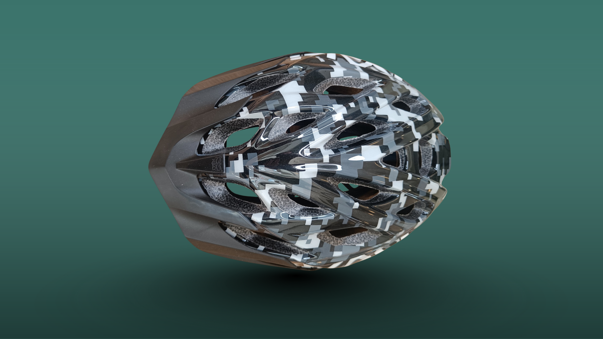 Det første, man lægger mærke til ved hjelmen, er dens iøjnefaldende camo-inspirerede mønster i grå og sorte nuancer. Den giver et råt og moderne look, der skiller sig ud fra de klassiske ensfarvede hjelme. Perfekt til dig, der gerne vil kombinere sikkerhed med personlig stil.