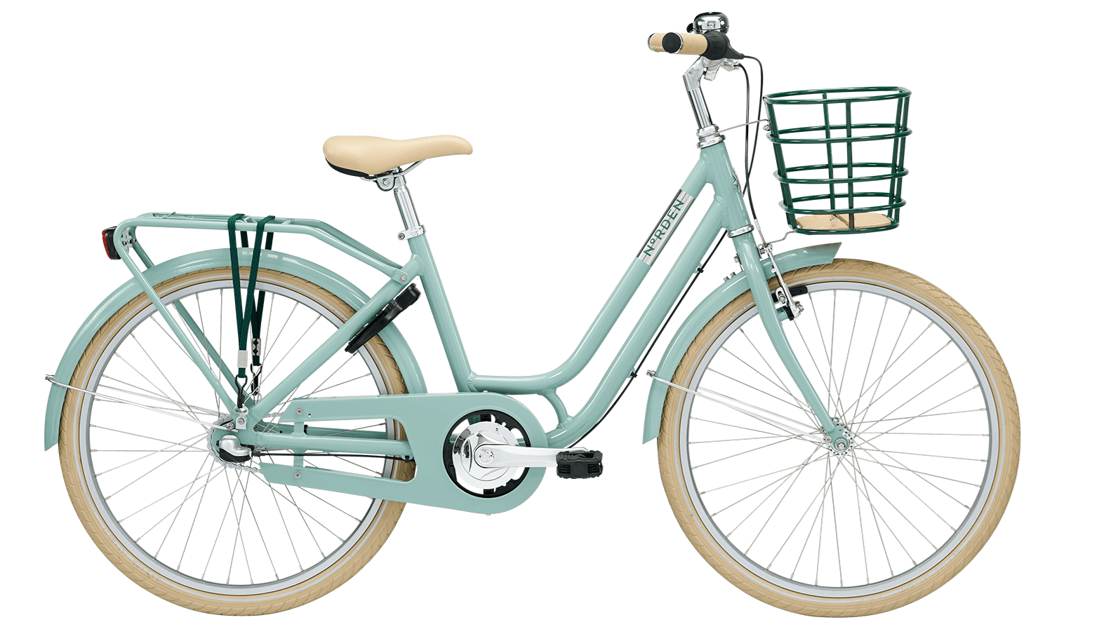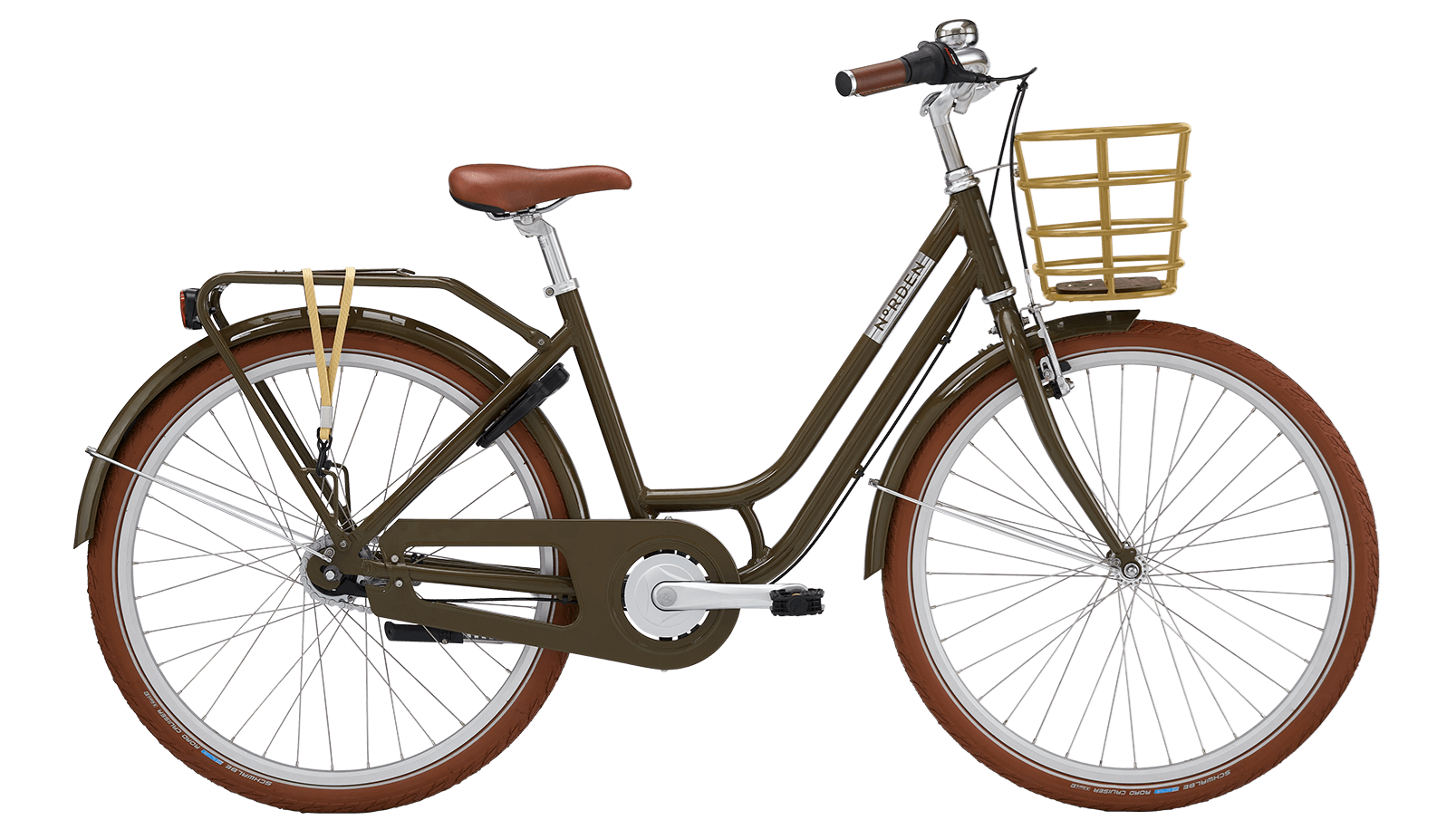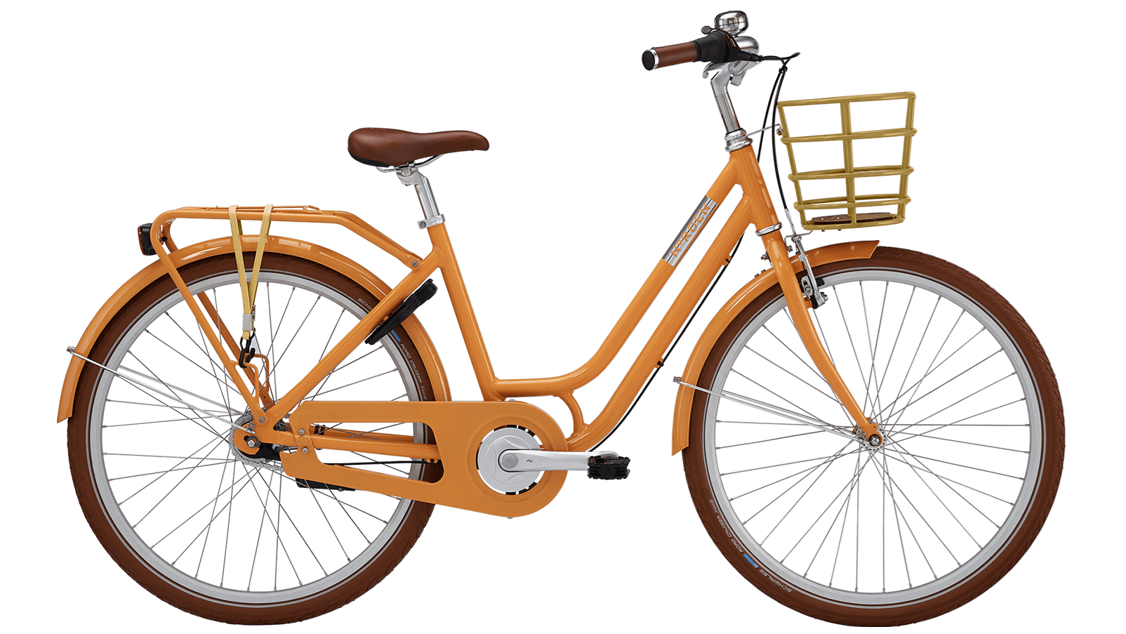 Leveres med kurv, bagagebærer + strop, støtteben, retroklokke og DVN godkendt lås.