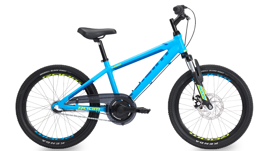 Sej drenge cykel med en skivebremse foran og fjedrende forgaffel.