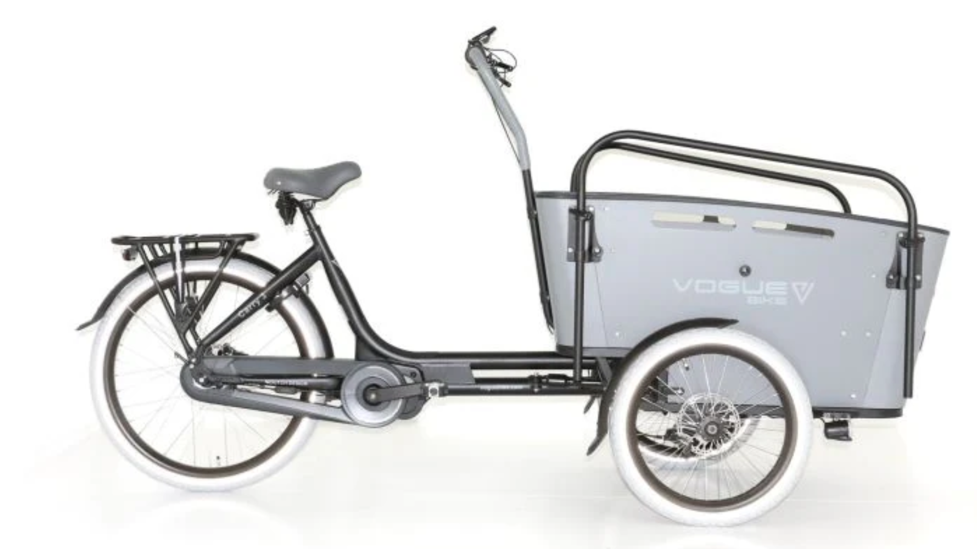 På det autentiske el-lastcykelstyr finder du LCD-displayet, hvormed du tydeligt kan styre din støtte. Rækkevidden er mellem 40 og 70 kilometer med et fuldt opladet batteri. Batteriet er aftageligt og derfor nemt at oplade hvor og hvornår du vil. Vælg mellem 7 Shimano Nexus gear og 5 niveauer af digital kraft for optimal støtte under kørsel. Vogue Carry 3 er en ny serie af hyppigt brugte e-lastcykler, der fås i to farver, mat-sort/brun og mat-sort/sort.