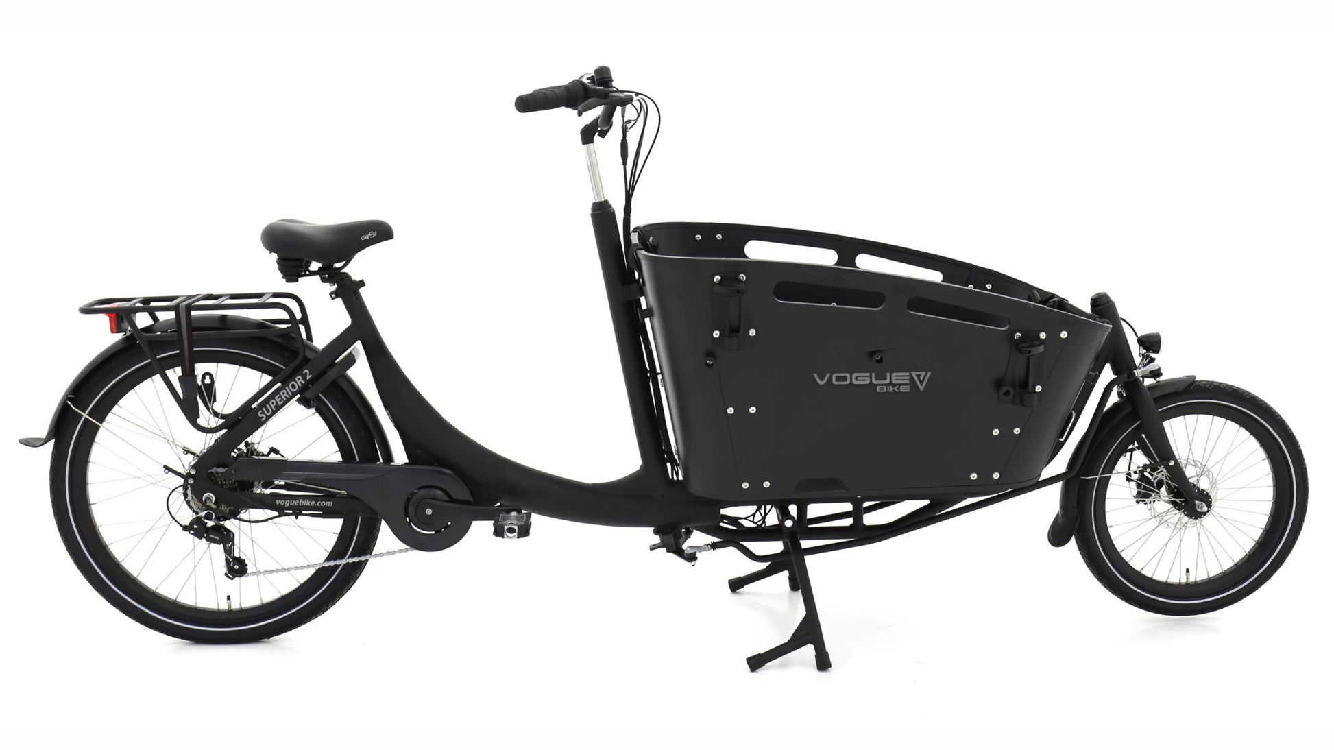 Vogue Superior 2 er en prisbillig el-ladcykel med plads nok til nemt at transportere dine børn. Den effektive pedalstøtte sørger for, at du får et ekstra boost. Superior 2 har og aluminium sramme og og robust motor på baghjulet. Det 7-trins Shimano skiftegear giver dig frihed til selv at vælge niveauet af støtte. Den optimale rækkevidde for Vogue Superior 2 er mellem 50 og 70 kilometer på et fuldt batteri, afhængigt af blandt andet vægten du tager med dig. Du finder det digitale farvedisplay på denne el-lastcykel midt på styret, hvilket gør den let at læse.