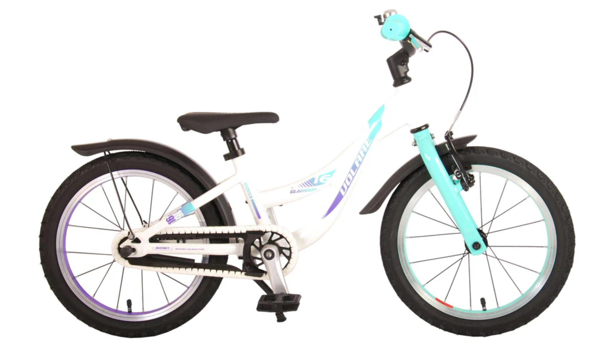 Volare Glamour 18” er den ideelle cykel til piger, der elsker farver, elegance og eventyr på to hjul. Med sit feminine design i hvid, mint og lilla kombinerer cyklen både stil og funktionalitet – og giver barnet en tryg og behagelig køreoplevelse, hver gang turen går ud i skolegården, på legepladsen eller rundt i nabolaget.