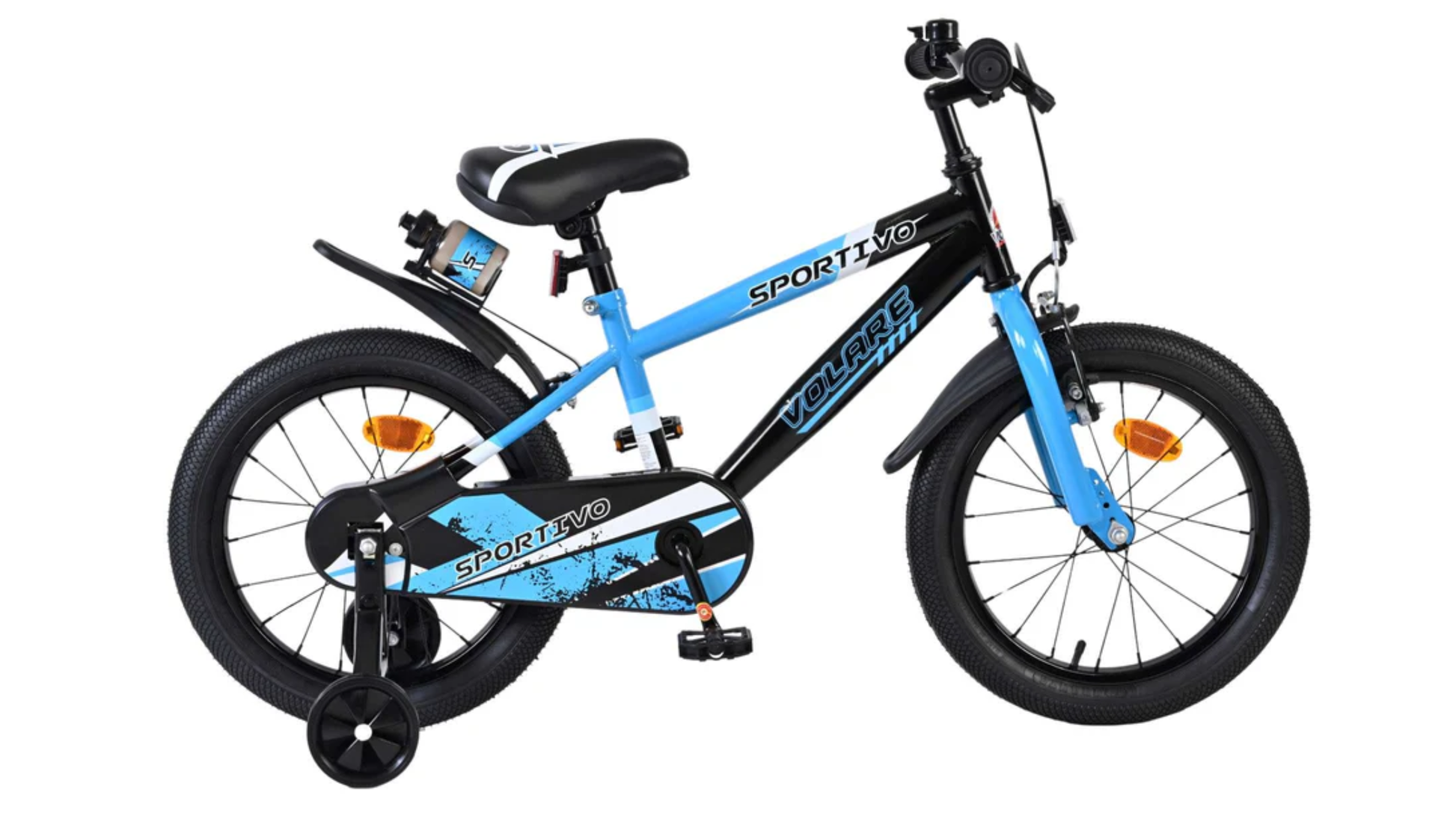 Sikkerhed er altafgørende! Derfor har denne fede cykel håndbremse, fodbremse og aftagelige støttehjul. Komfort er også blevet tænkt ind. Den attraktive sort-blå Volare-cykel har et flaskeholder og en lukket kædeskærm, der beskytter dine fingre. For at sikre, at du kan nyde cyklen så længe som muligt, er sadlen og styret højdejusterbare.